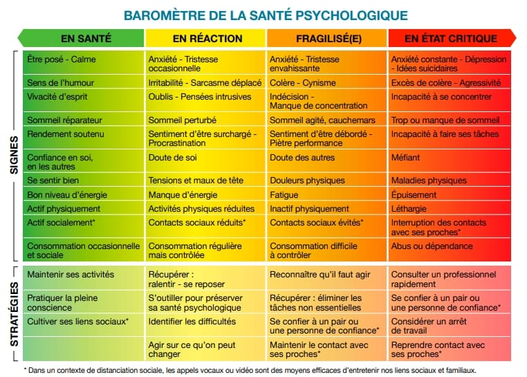 Nous relayons cet outil permettant de mesurer la santé psychologique et des impacts que cela peut engendrer. Cet outil d’auto évaluation, utilisé au Québec, permet de se demander si les personnes sont en bonne santé ou si il y a matière à s’inquiéter.