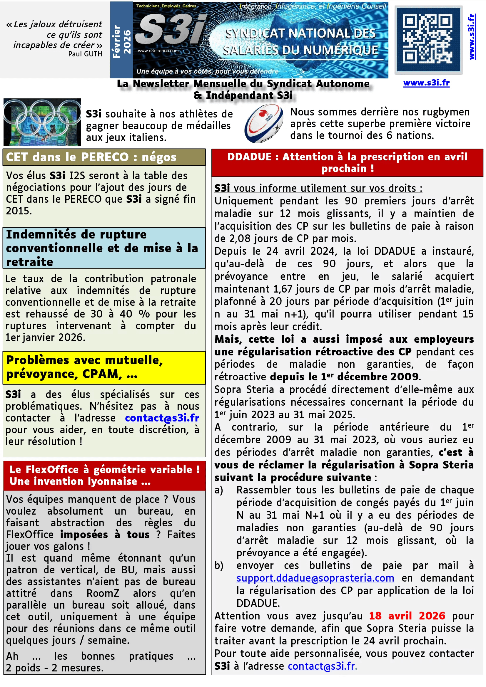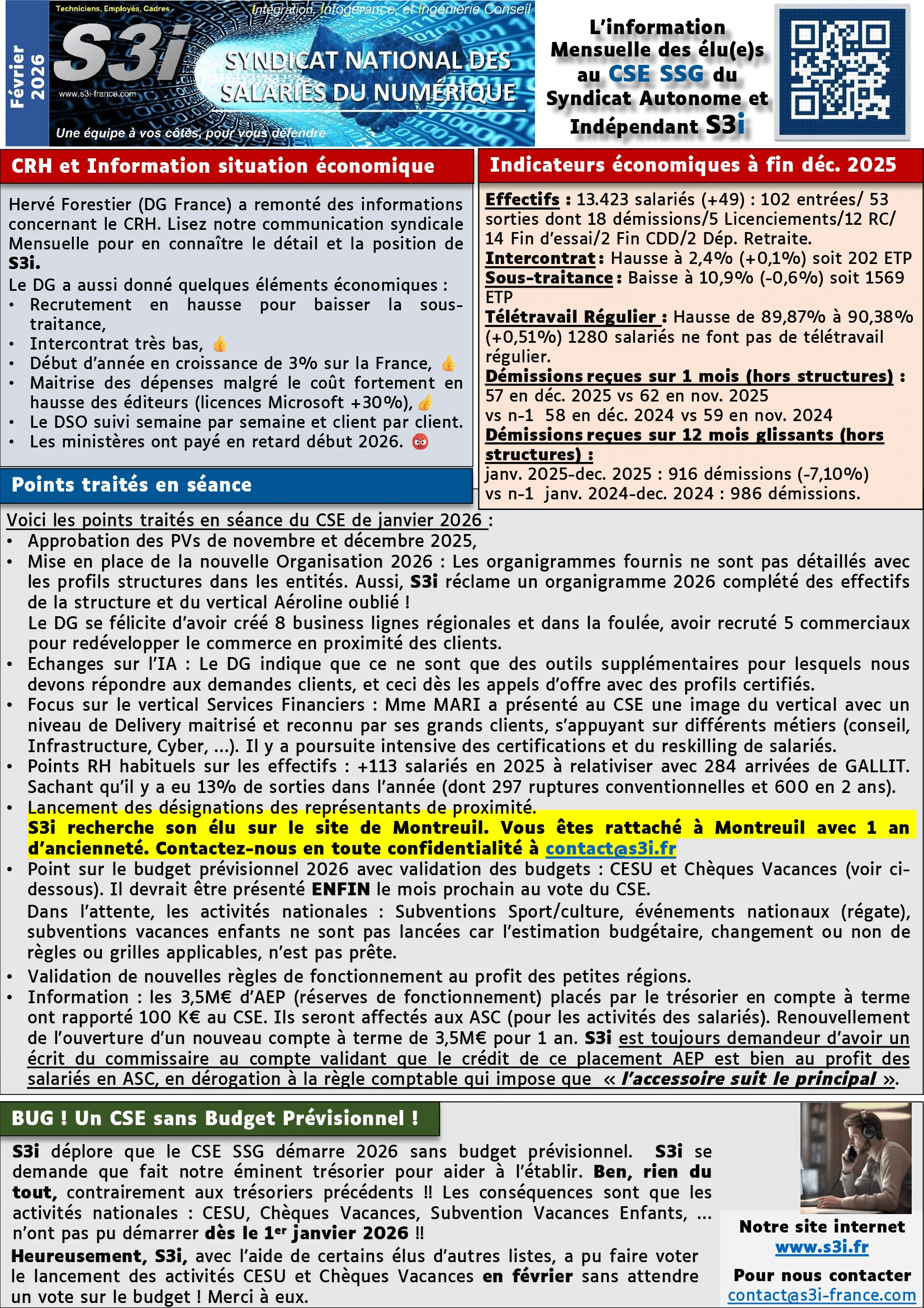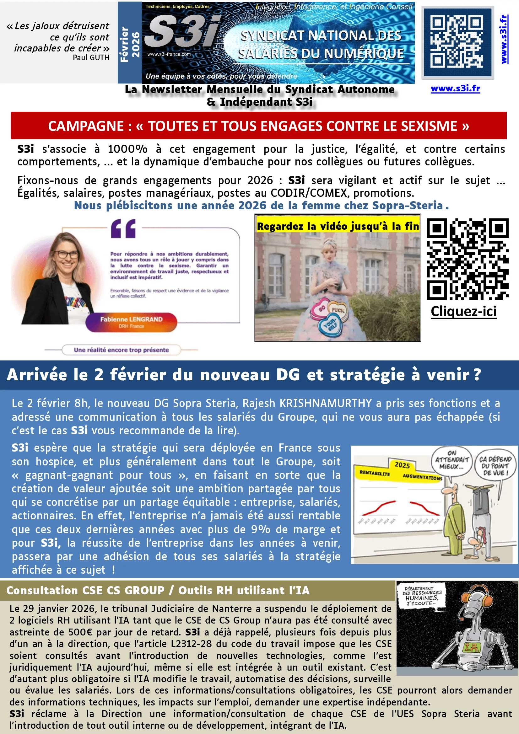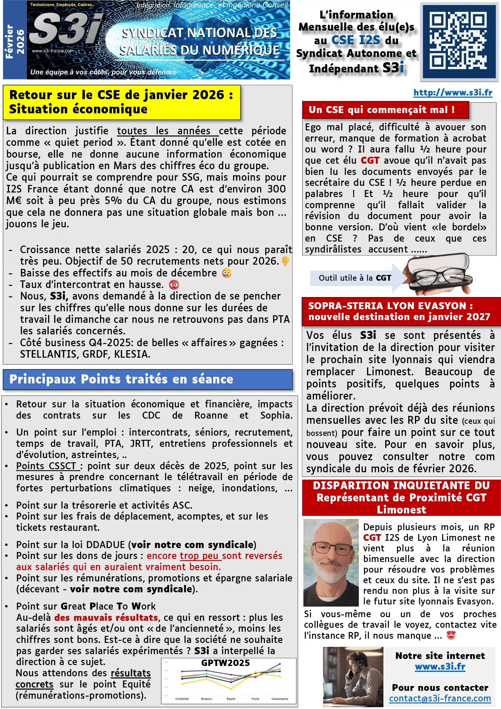 Information Syndicale et des élu(e)s au CSE Sopra Steria I2S et SSG – Février 2026
