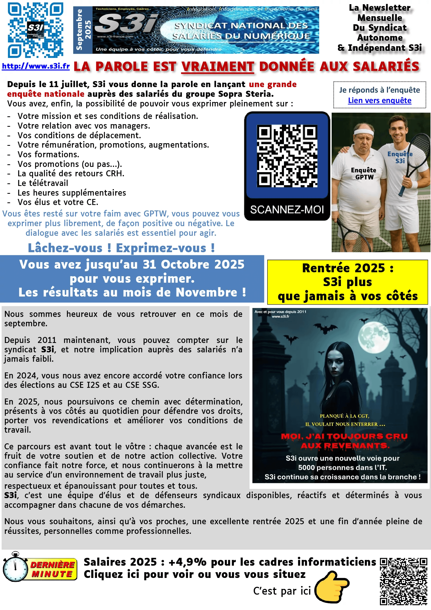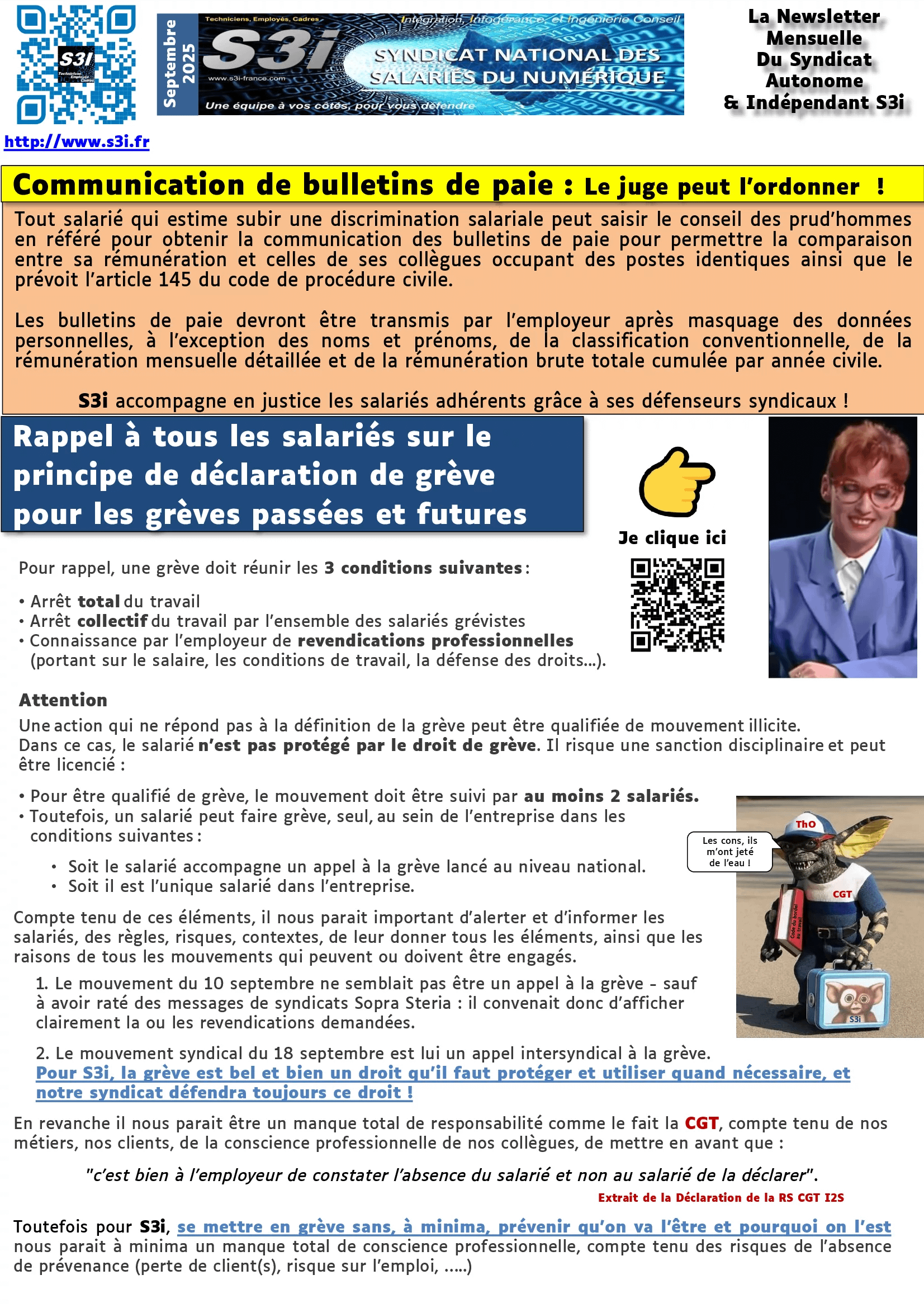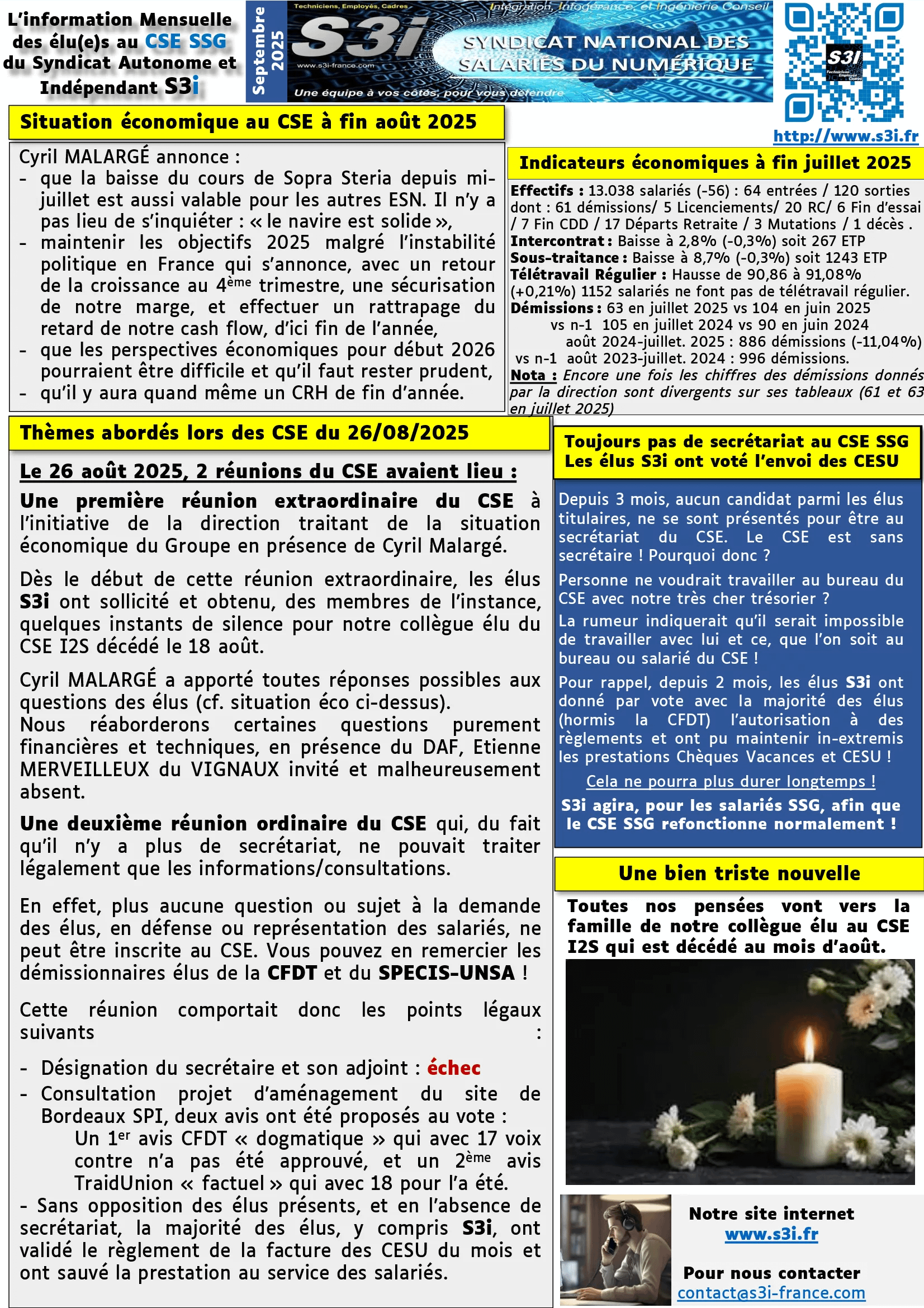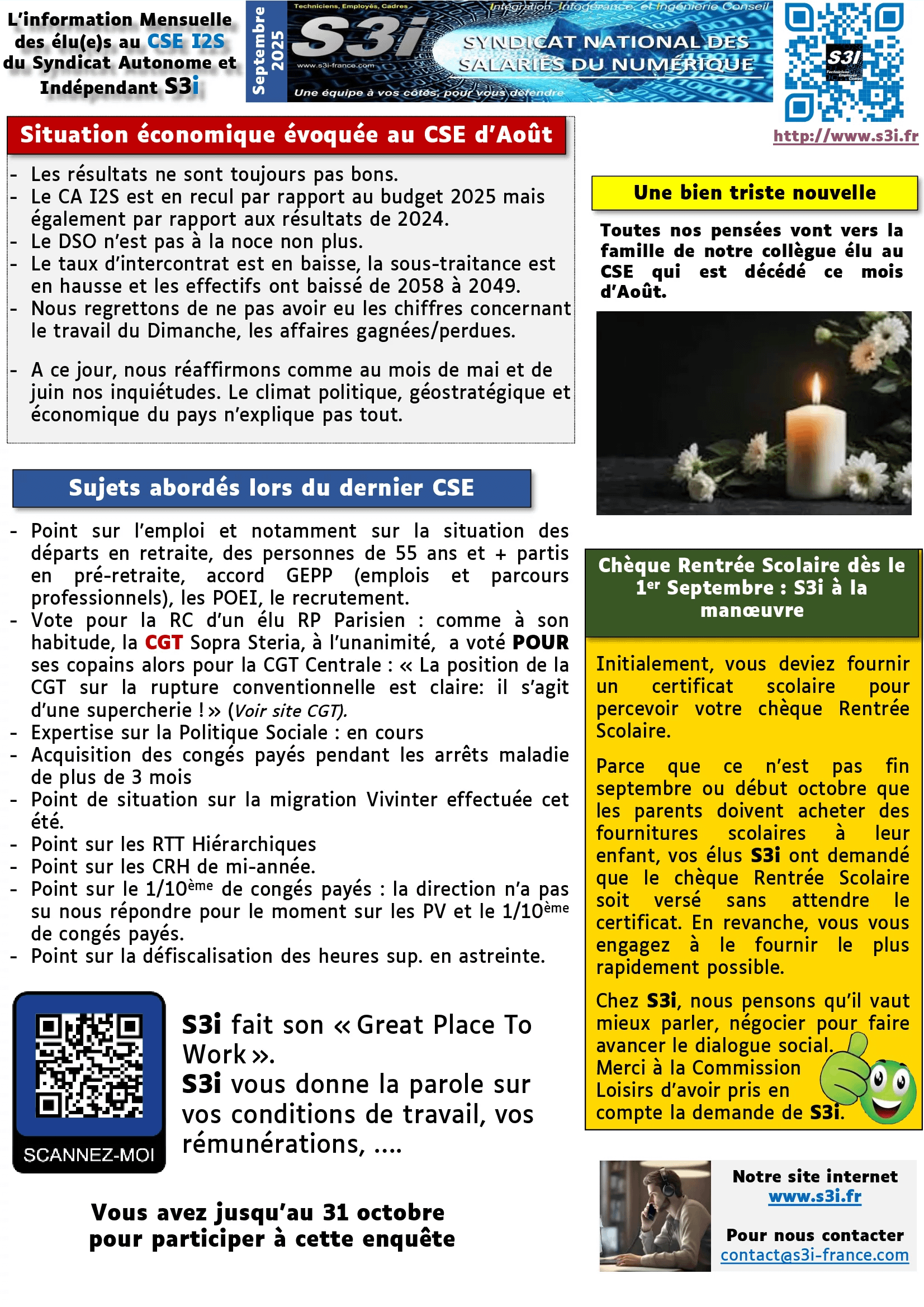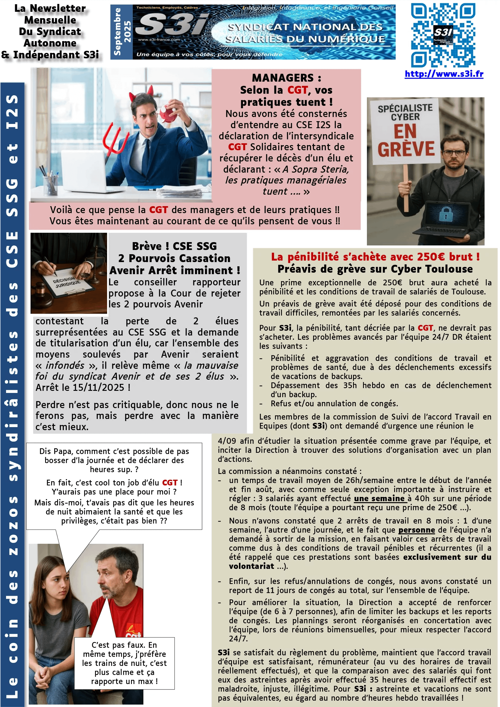 Comme chaque mois, lisez la communication syndicale et celle des élu(e)s au CSE I2S & SSG