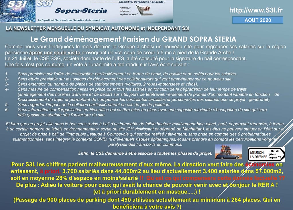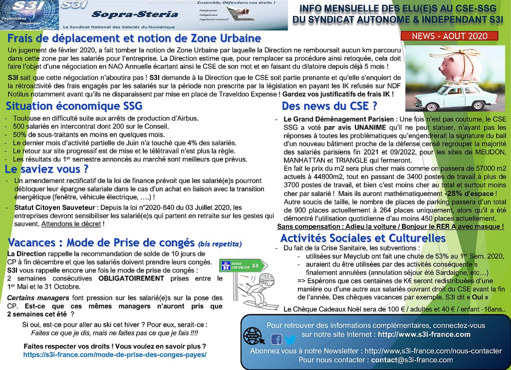 Communication des élu(e)s S3I au CSE-SSG – Août 2020