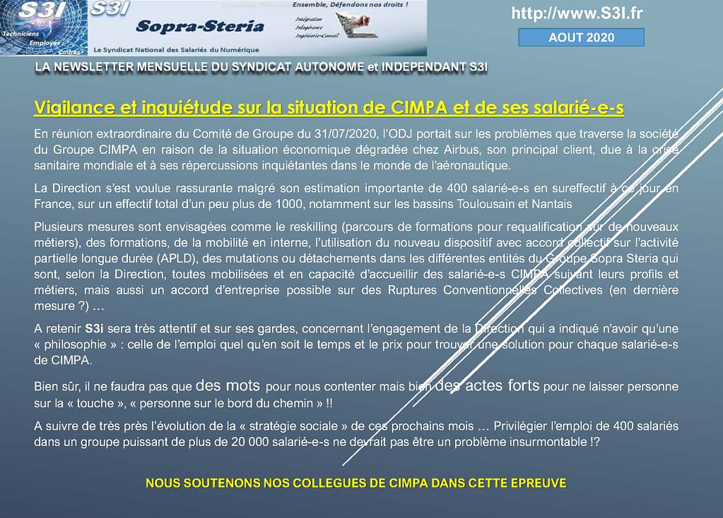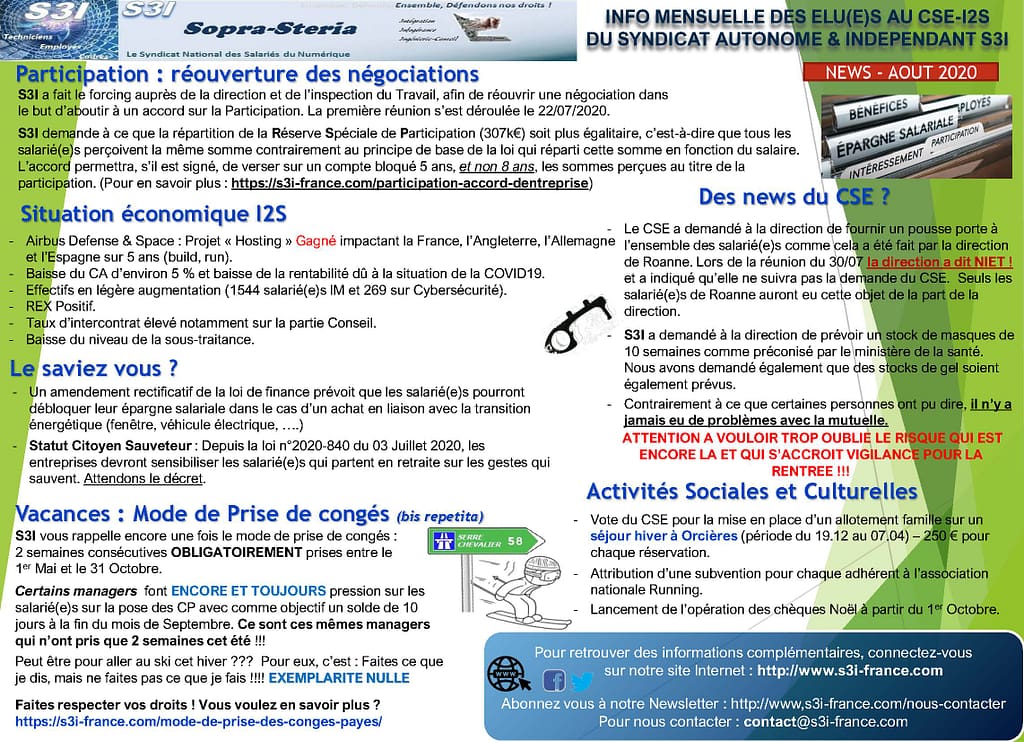 Communication des élu(e)s S3I au CSE-I2S – Août 2020