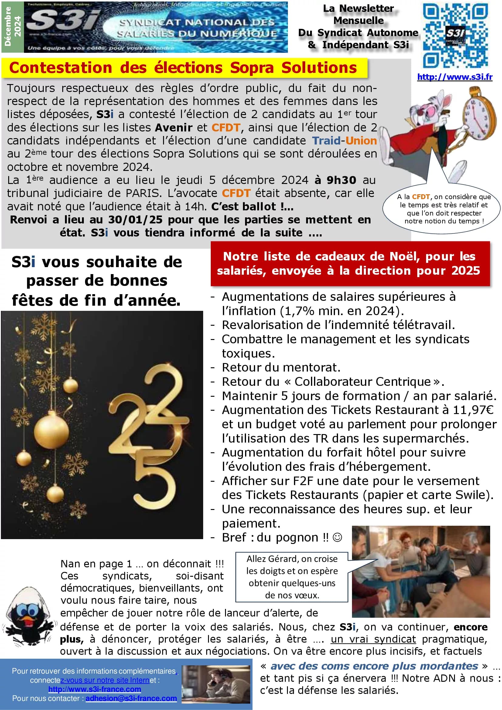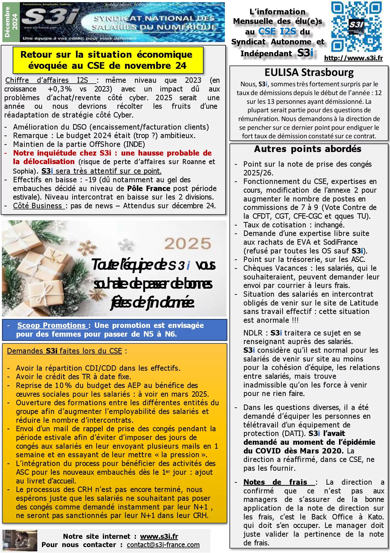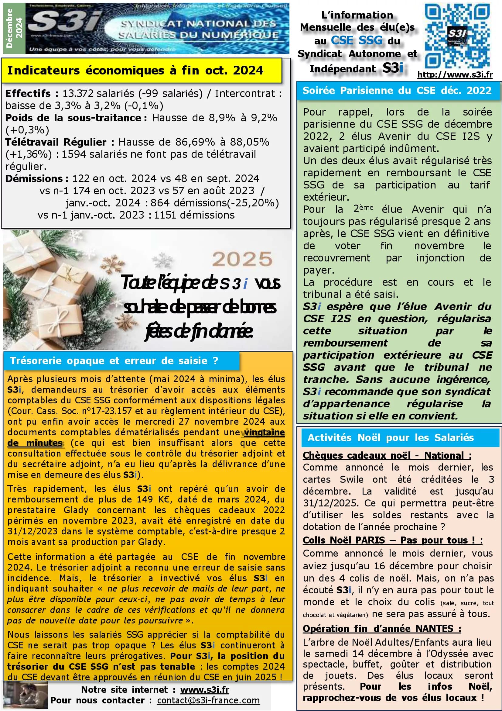 Information Syndicale et des élu(e)s au CSE Sopra Steria I2S et SSG – Décembre 2024