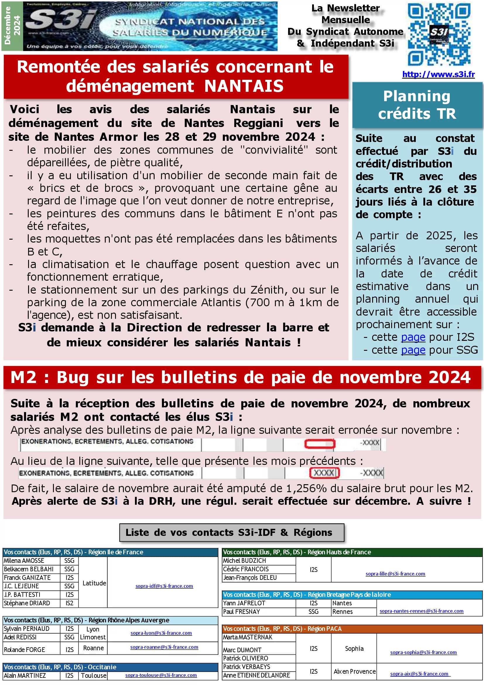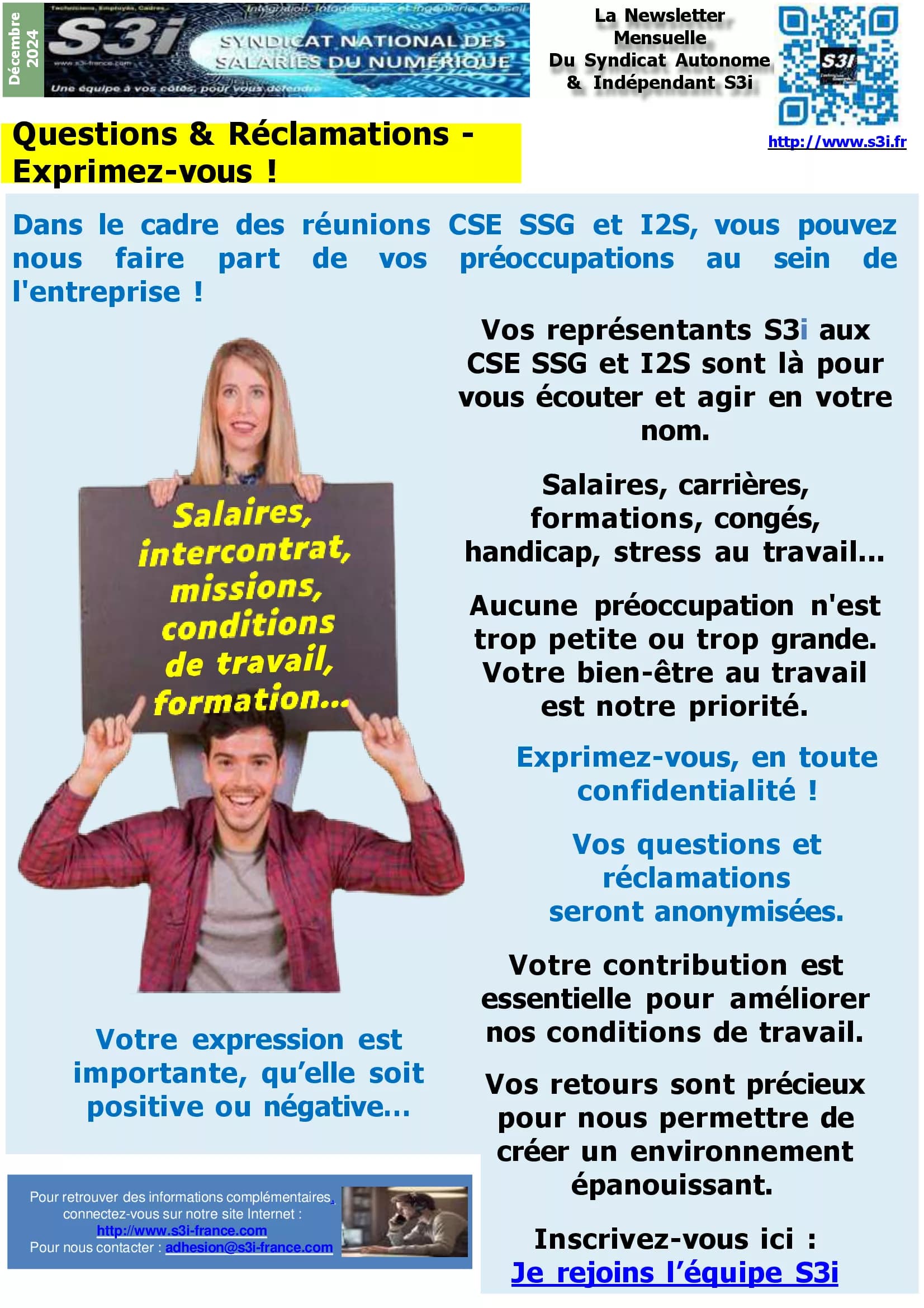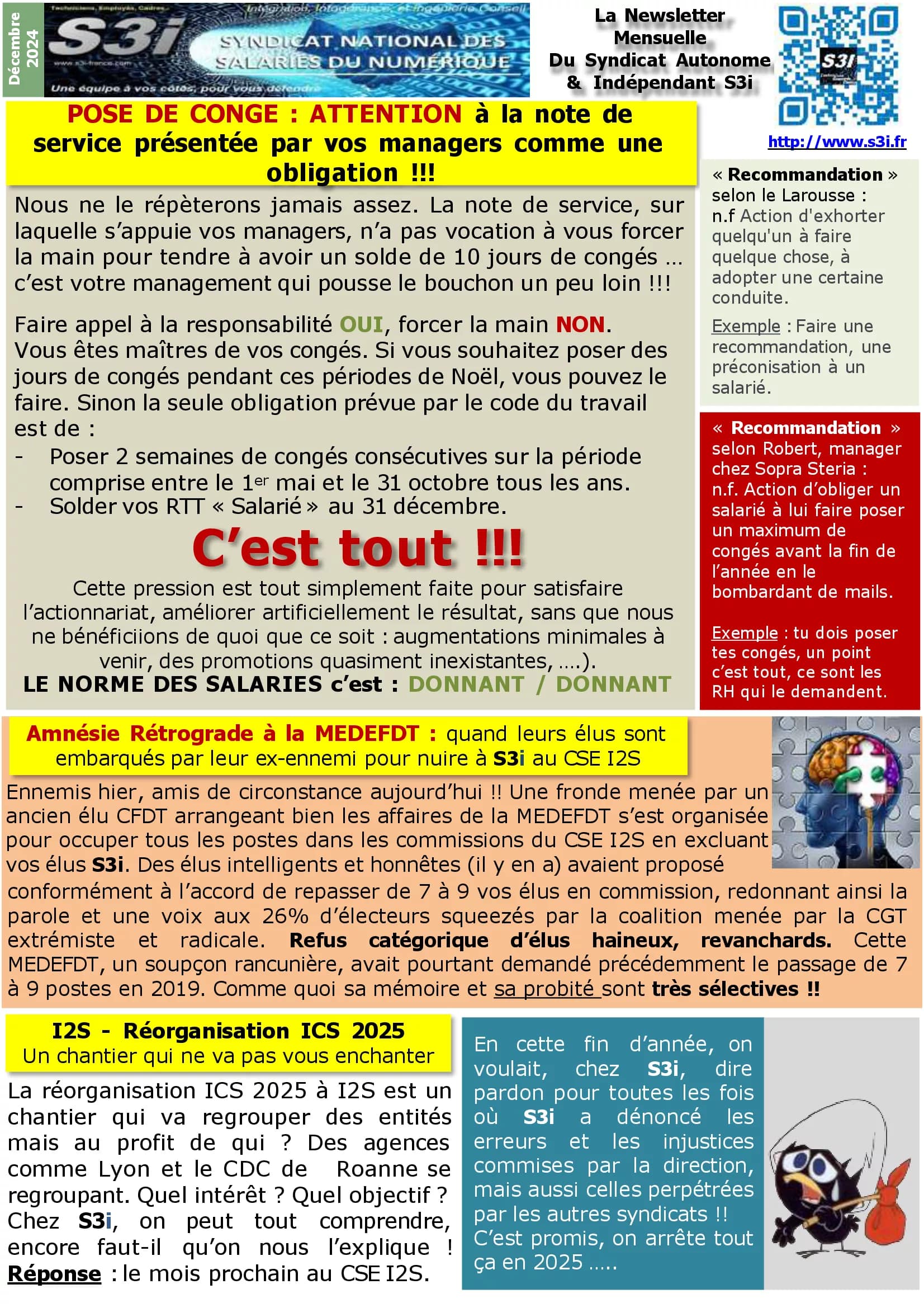 Information Syndicale et des élu(e)s au CSE Sopra Steria I2S et SSG – Décembre 2024