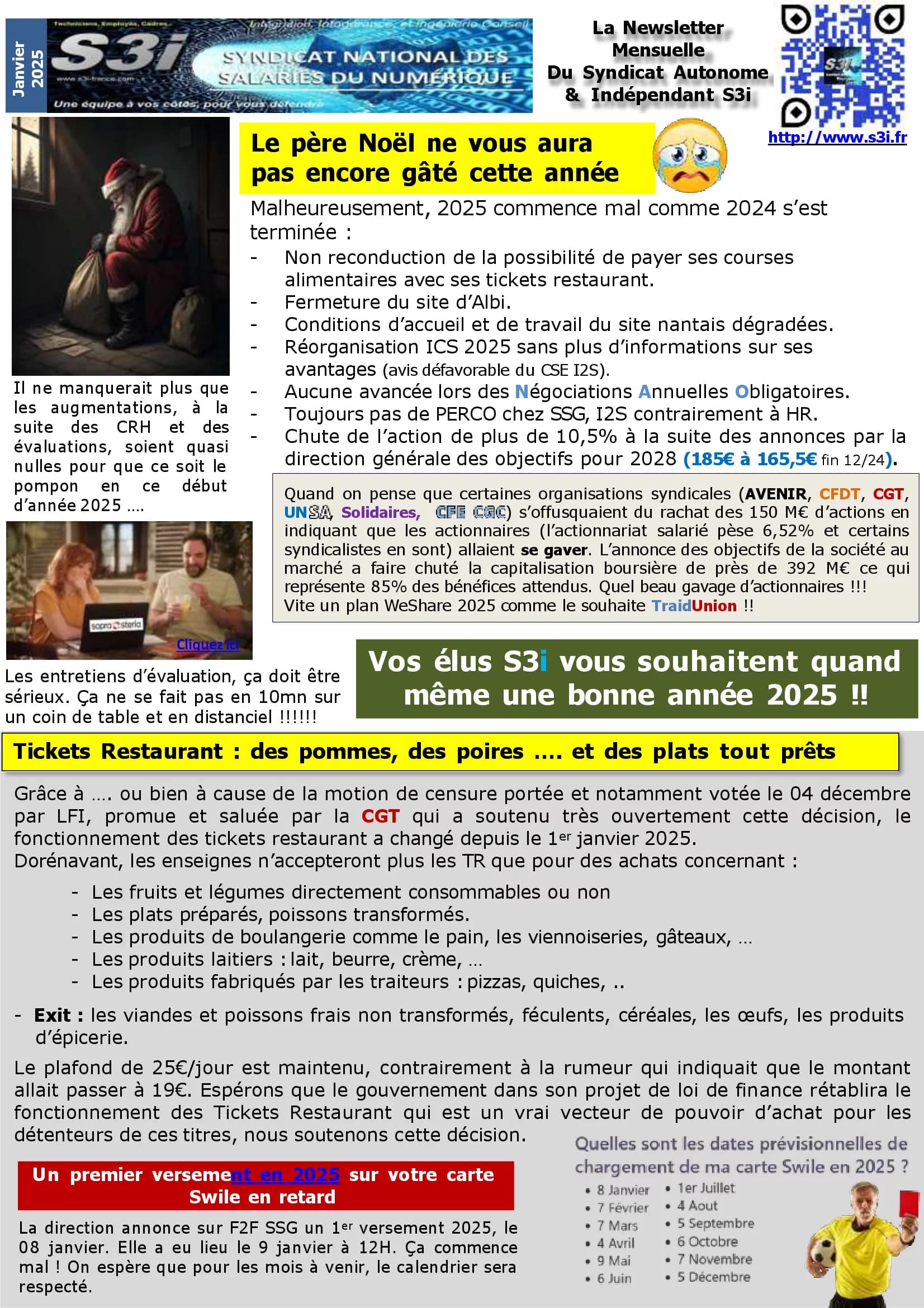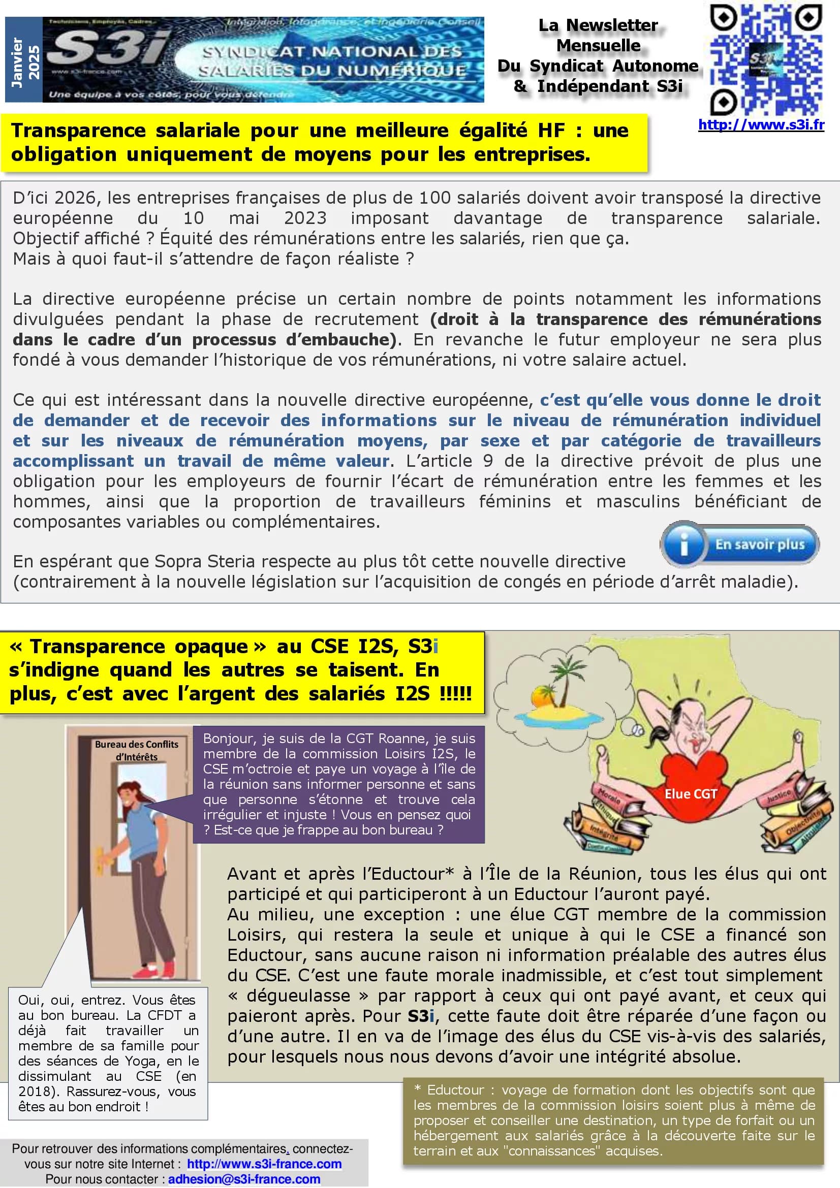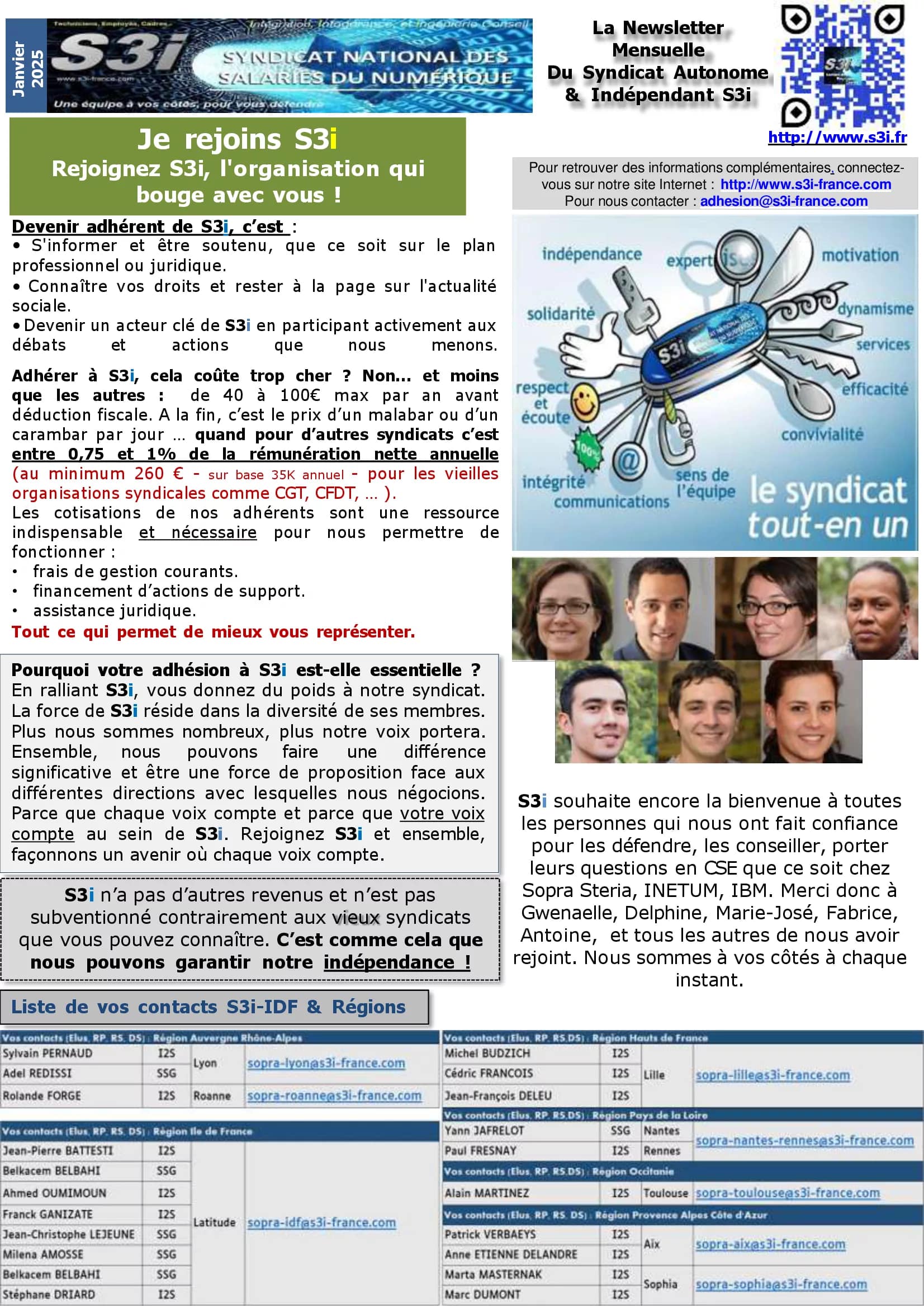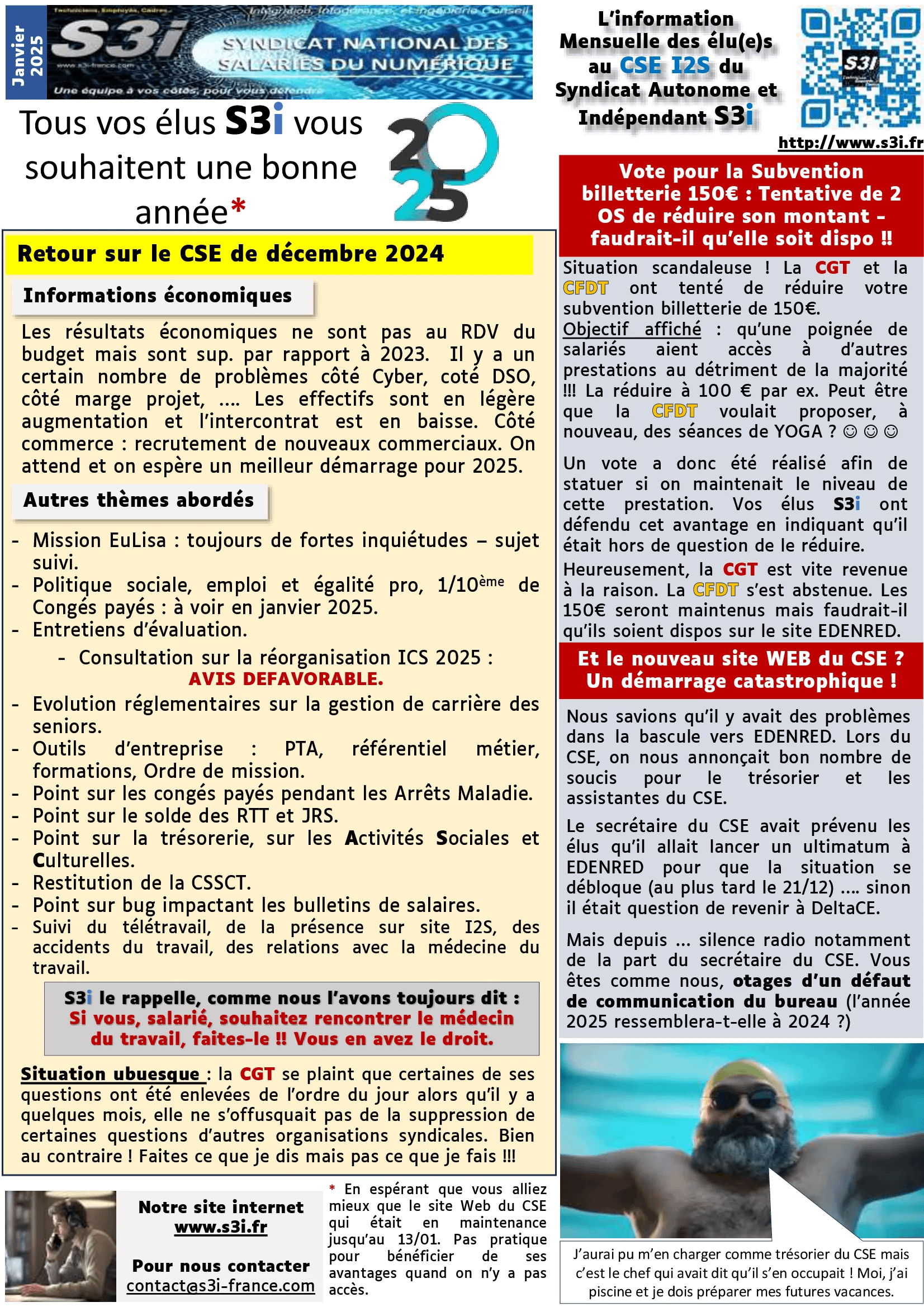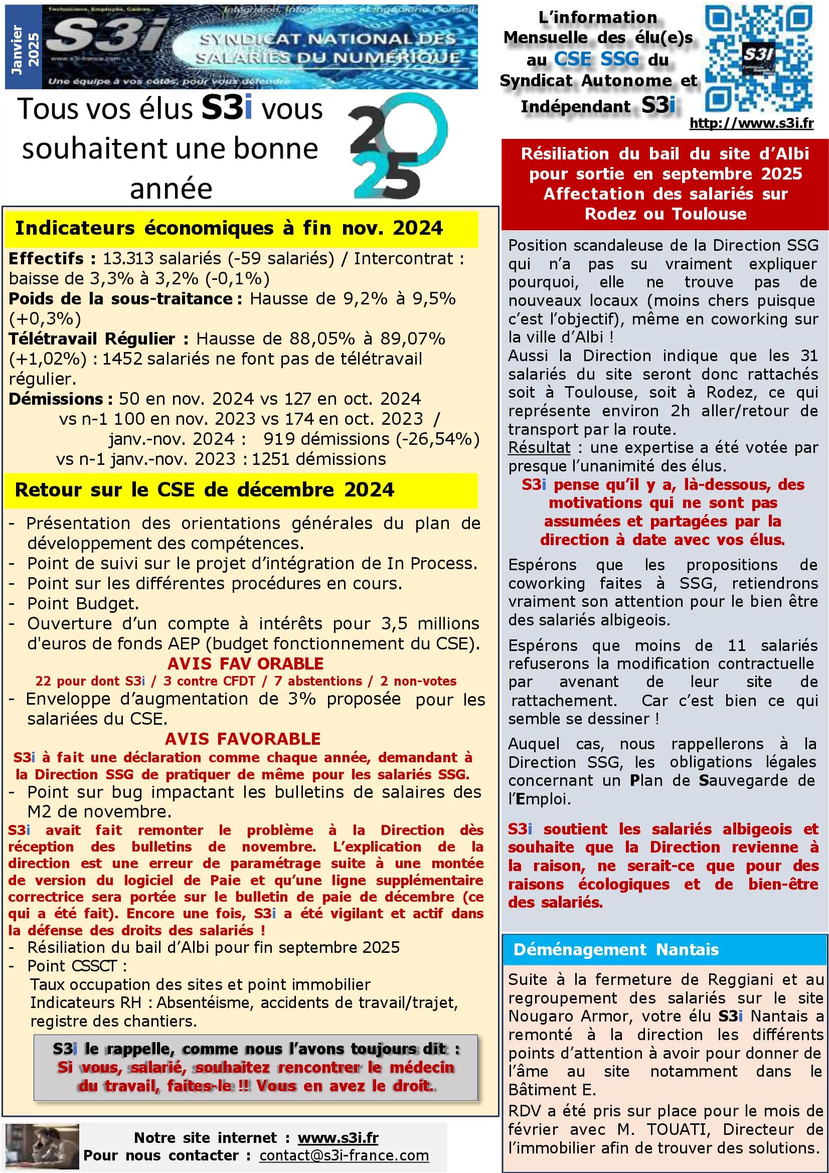 Information Syndicale et des élu(e)s au CSE Sopra Steria I2S et SSG – Janvier 2025