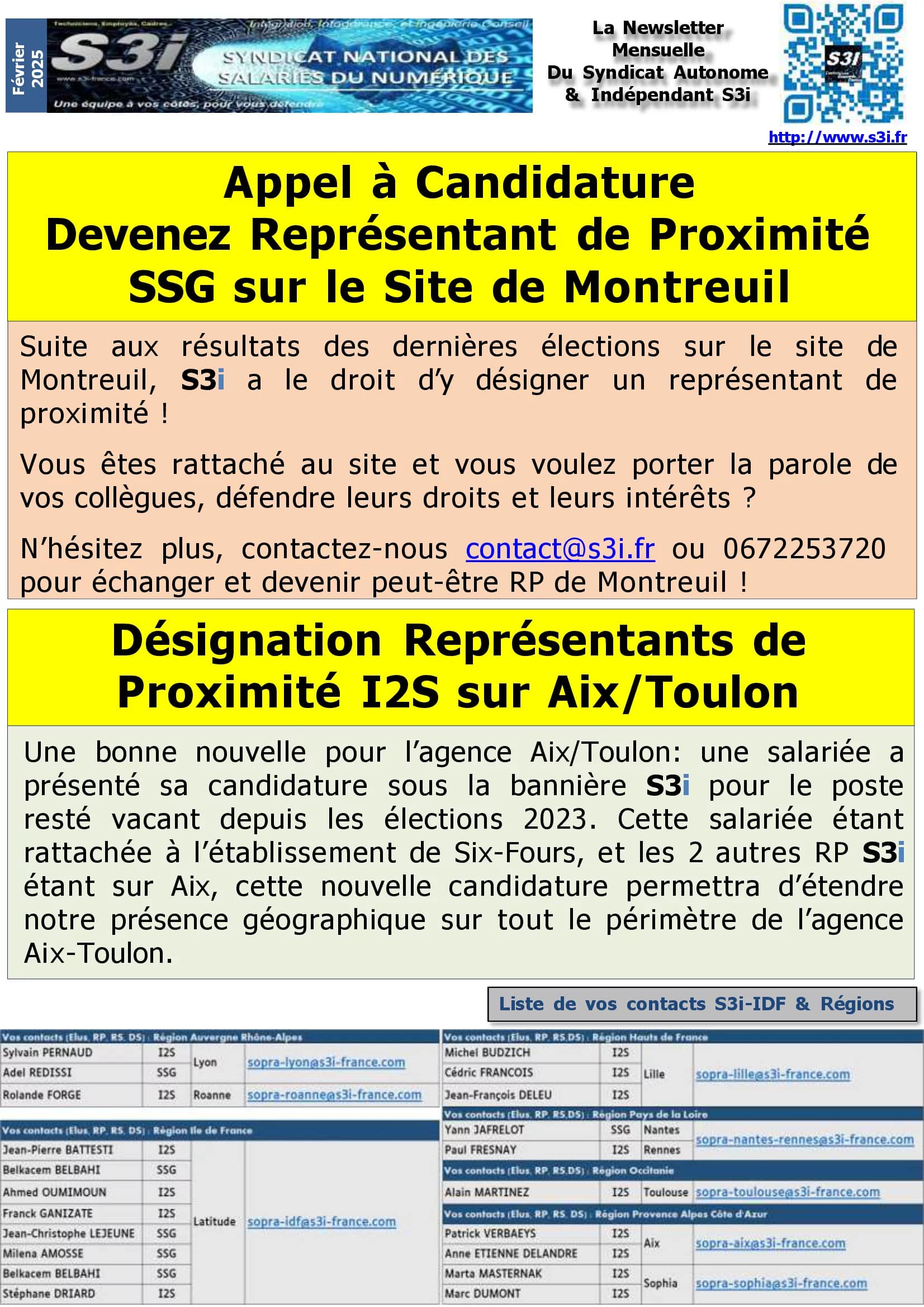 Communication syndicale des élu(e)s S3i :