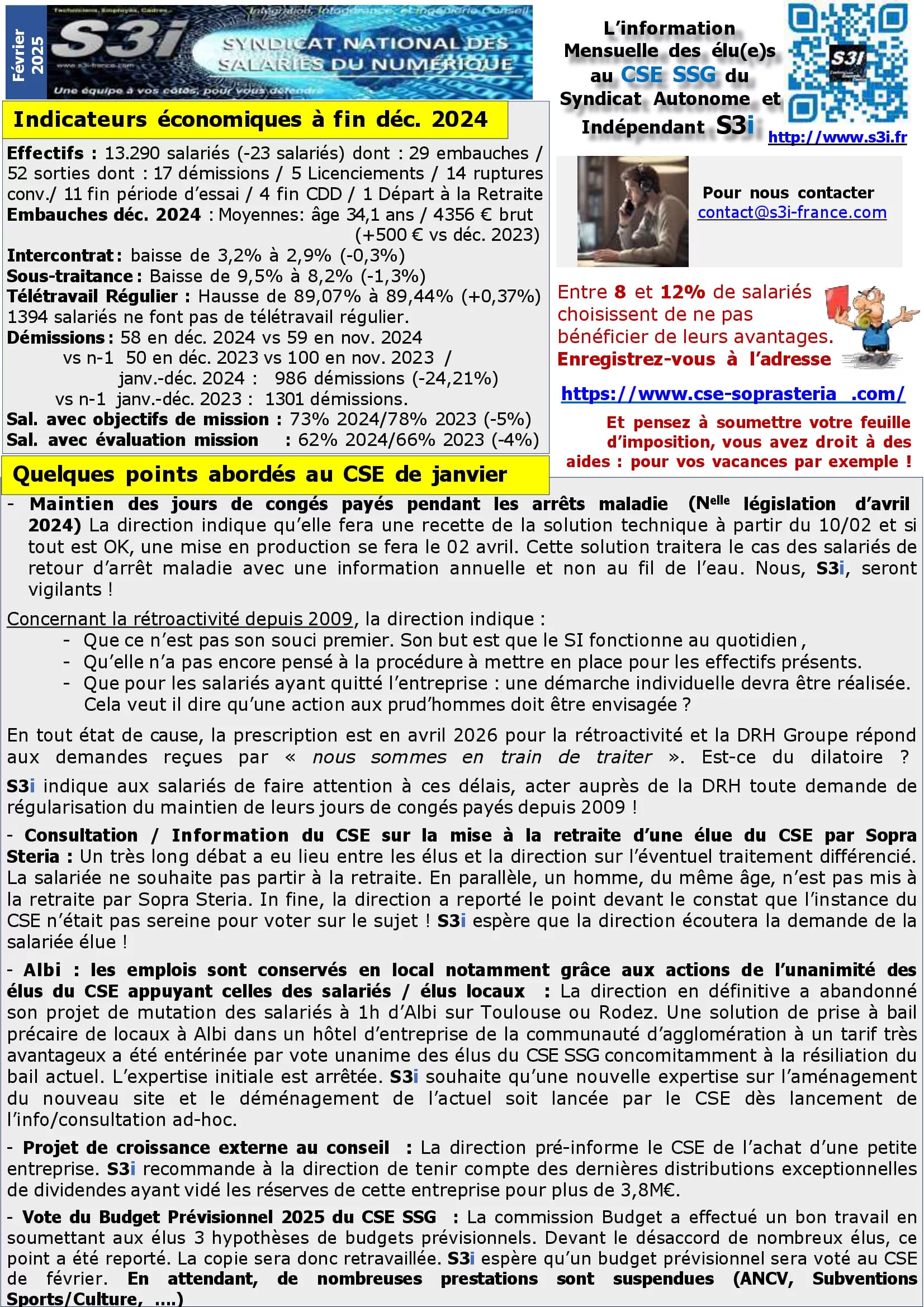 202502 S3I -2025 kickoff majestueux, CRH miséreux 🙁Téléchargez la com syndicale S3i – Sopra Steria Group – Février 2025