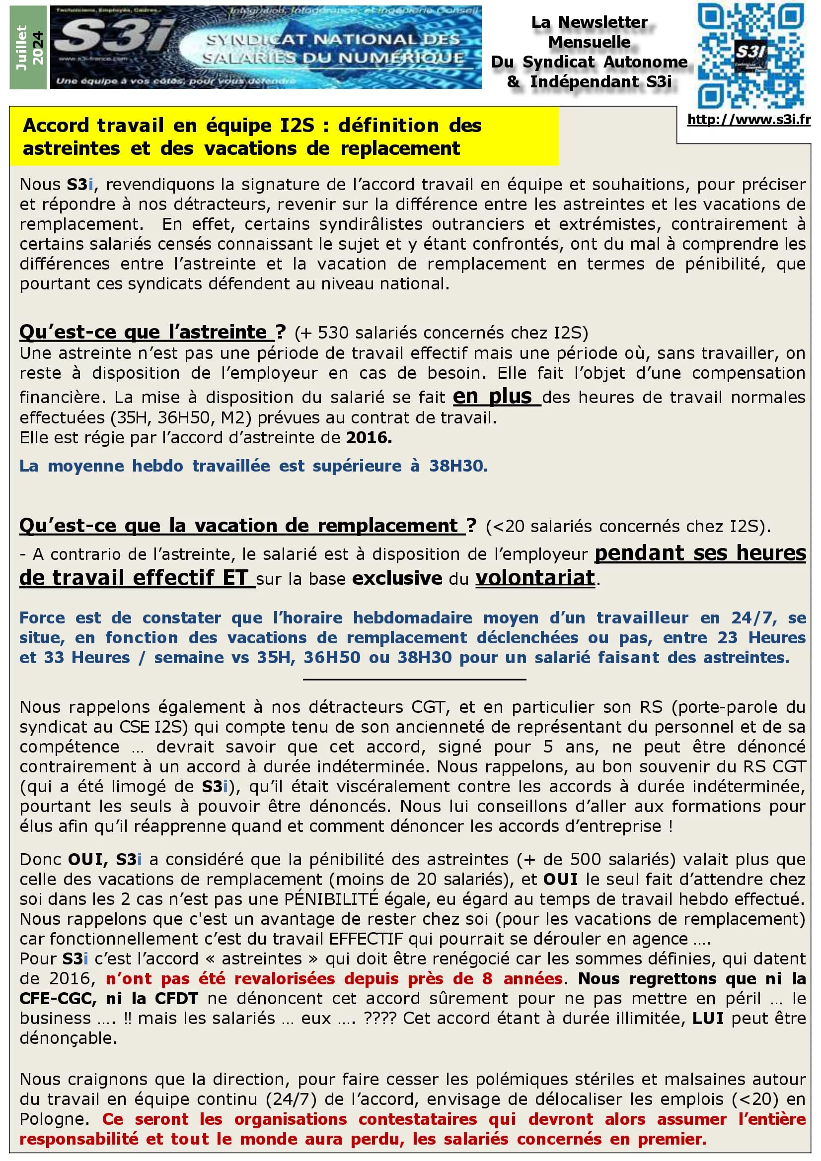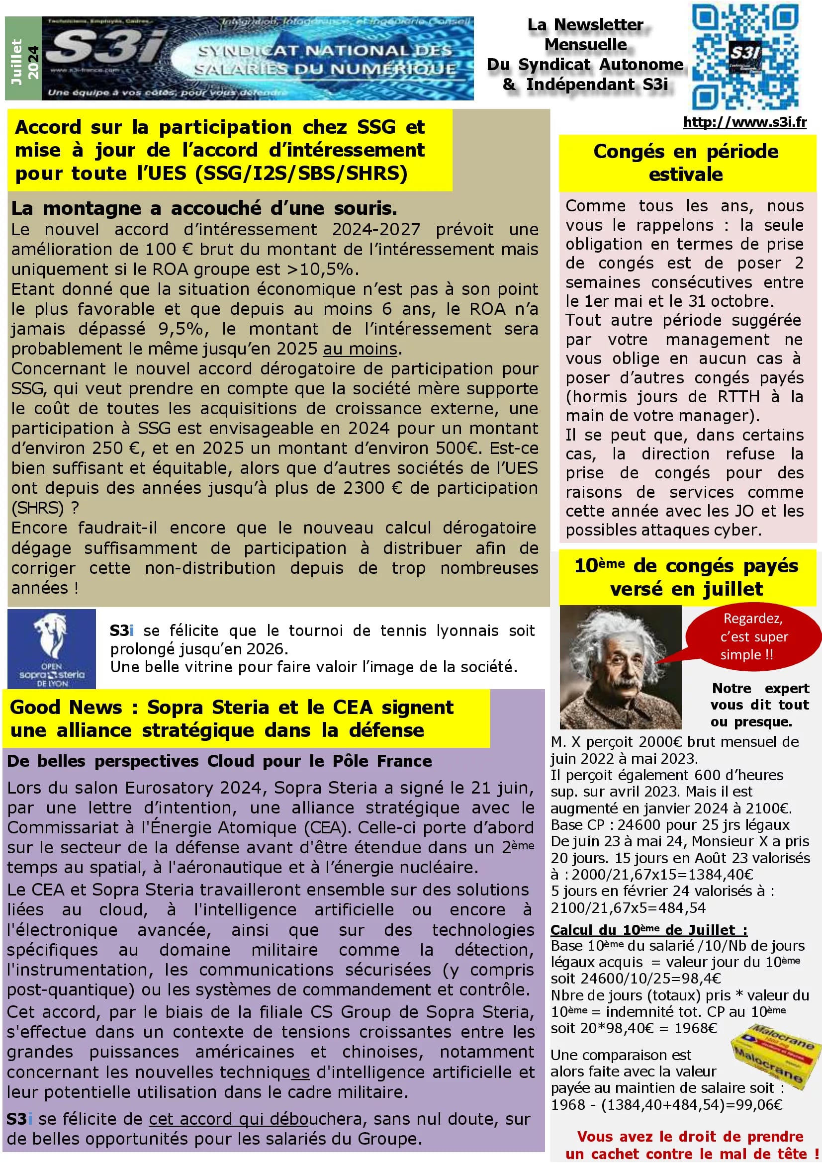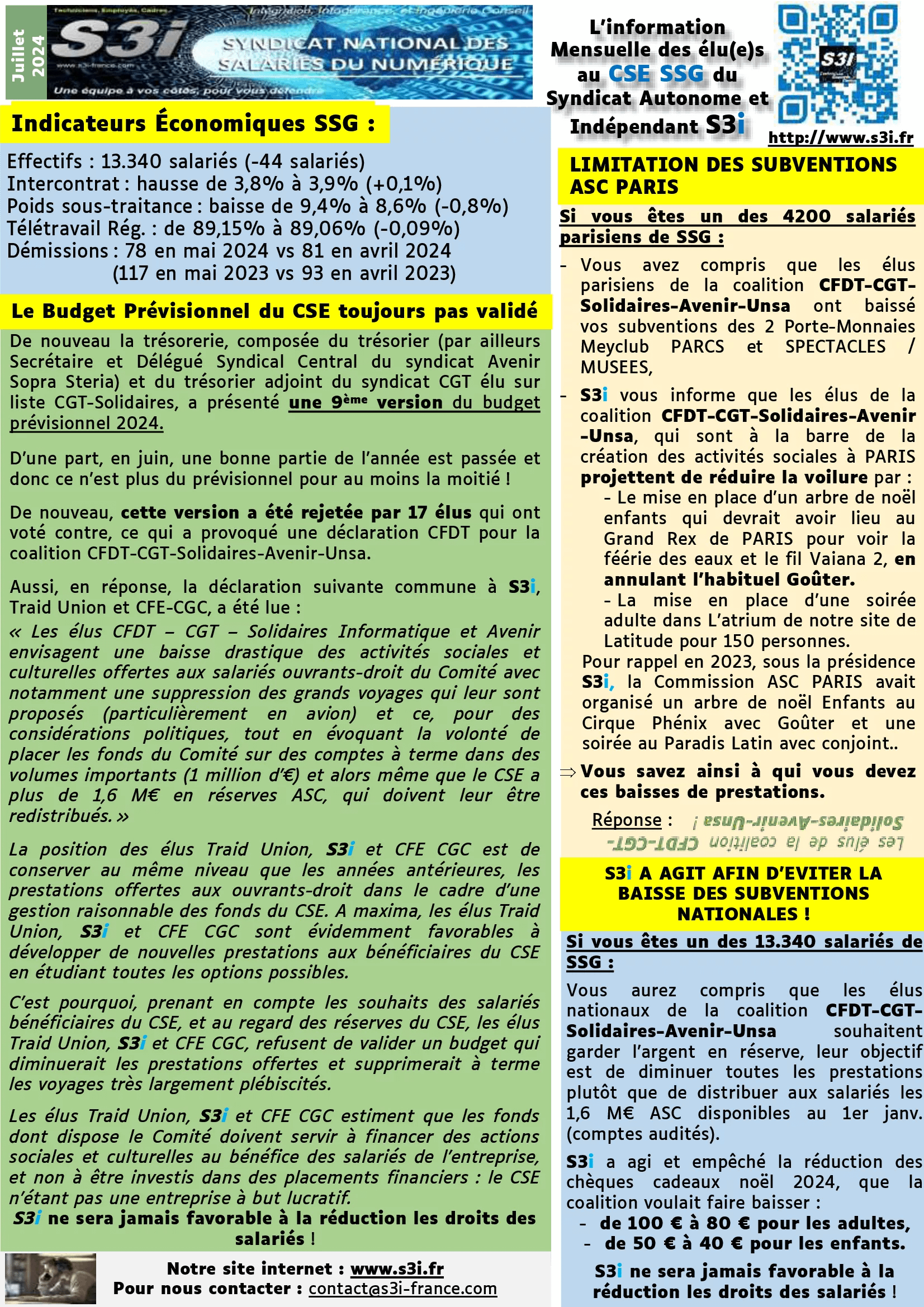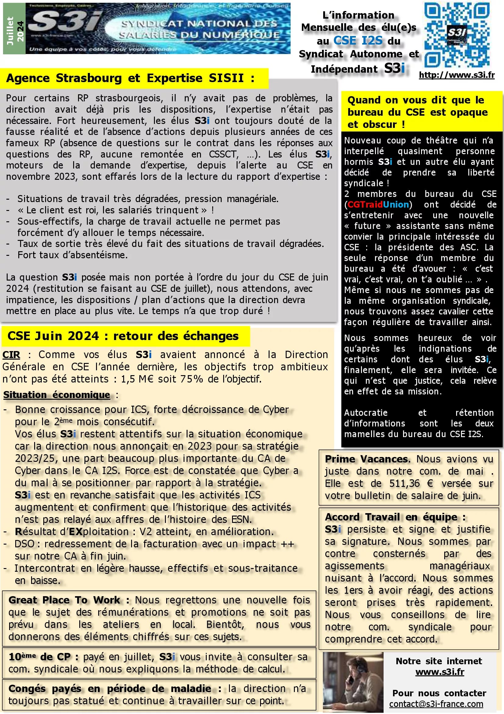 Comme chaque mois, lisez la communication syndicale et celle des élu(e)s au CSE I2S & SSG