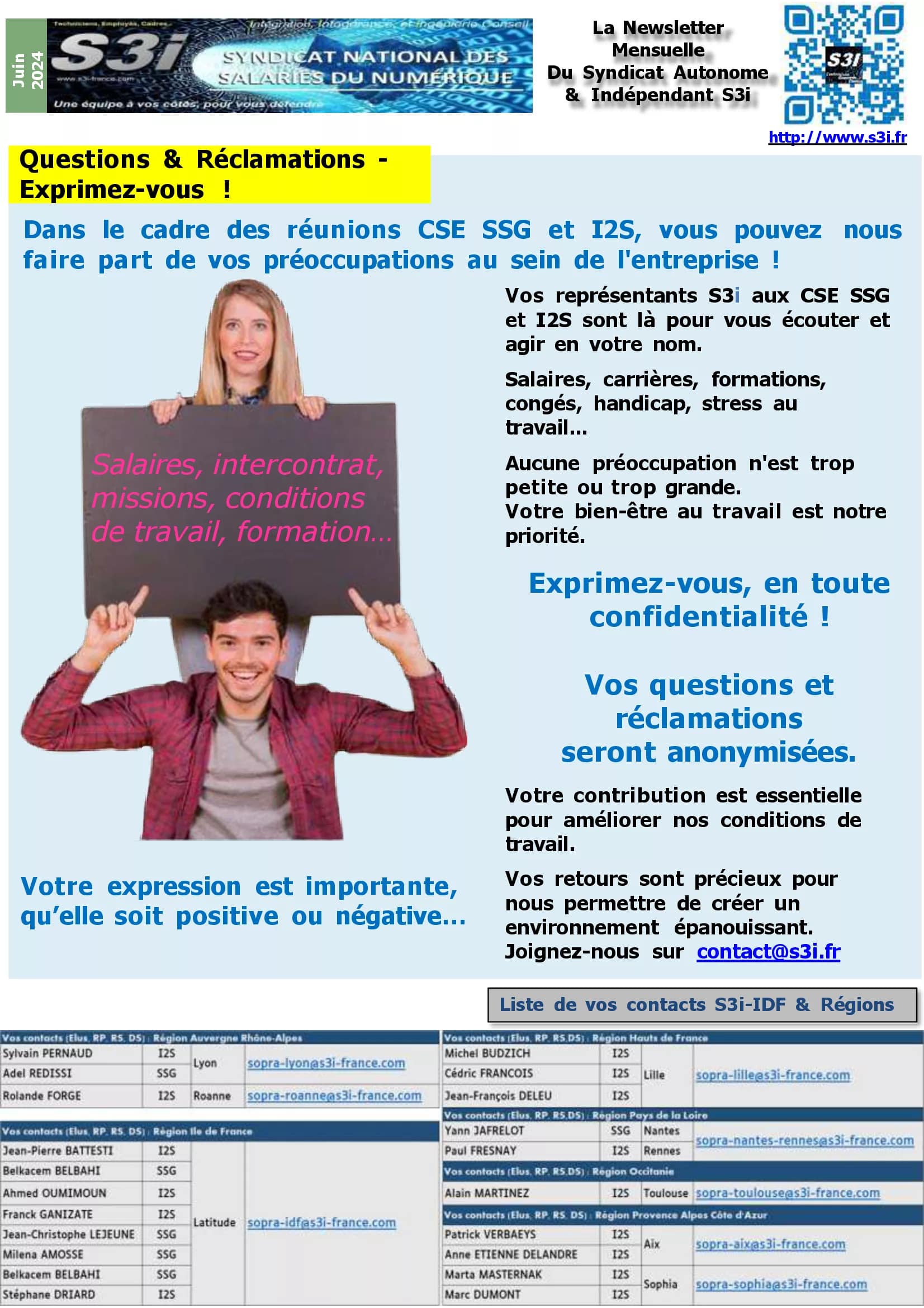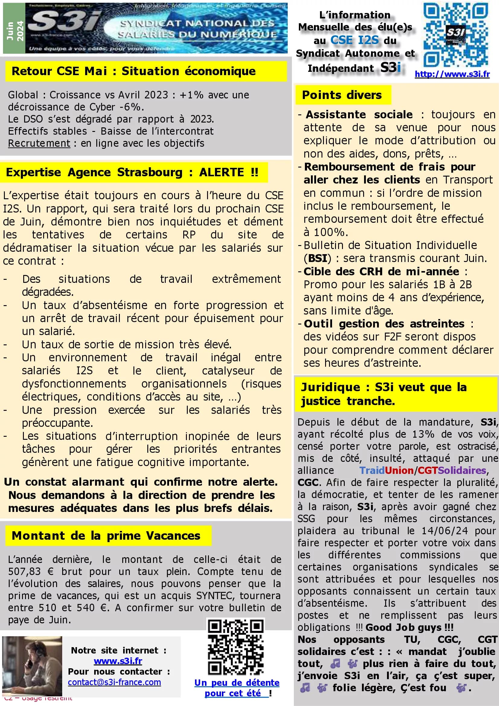Comme chaque mois, lisez la communication syndicale et celle des élu(e)s au CSE I2S & SSG