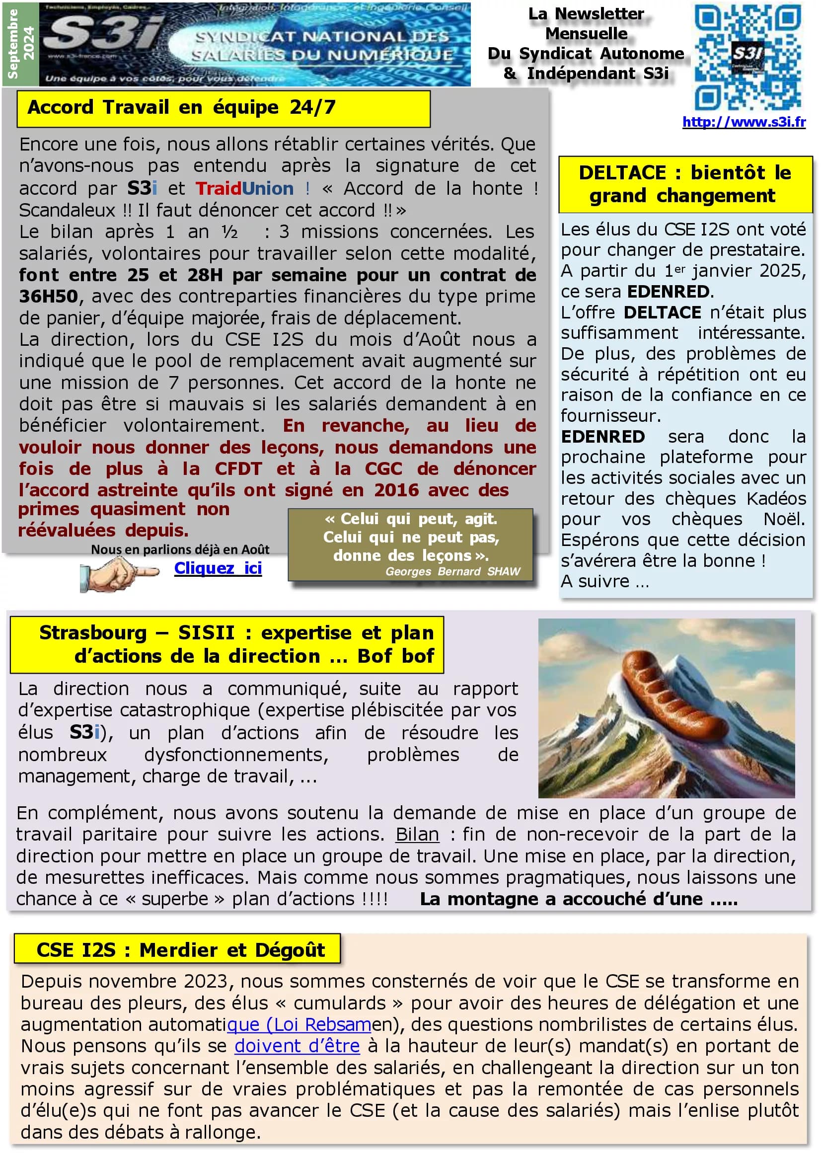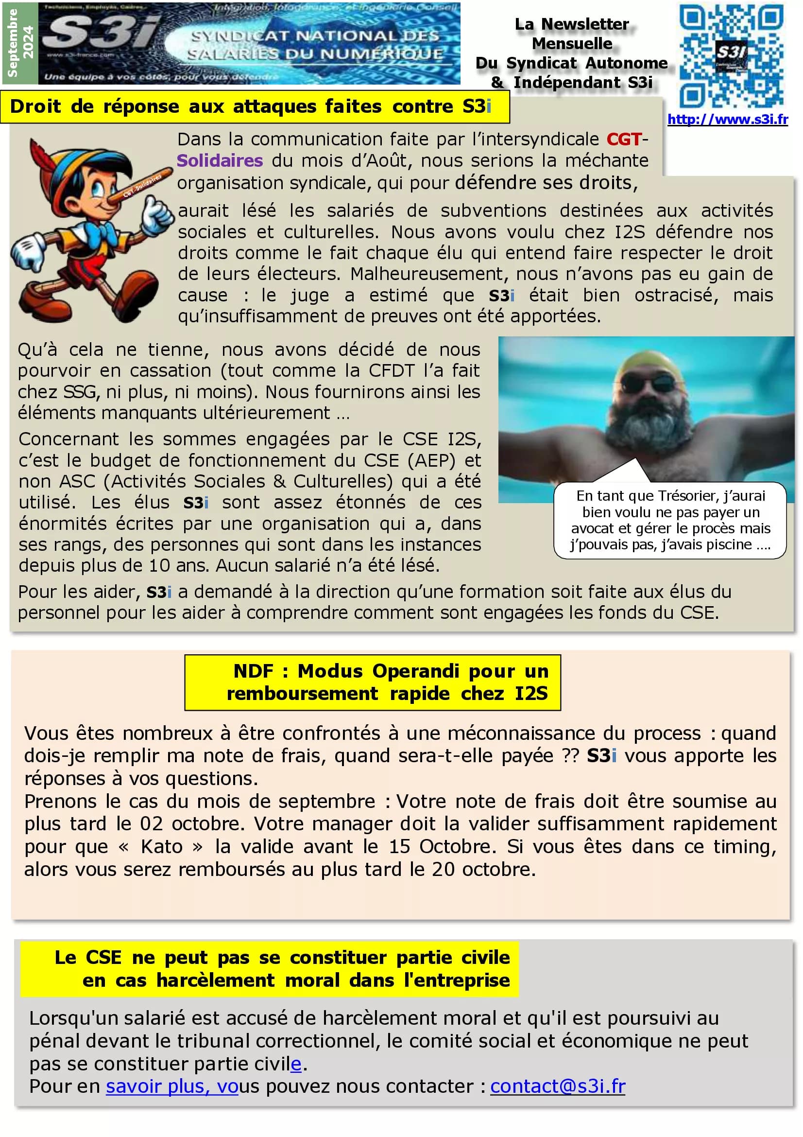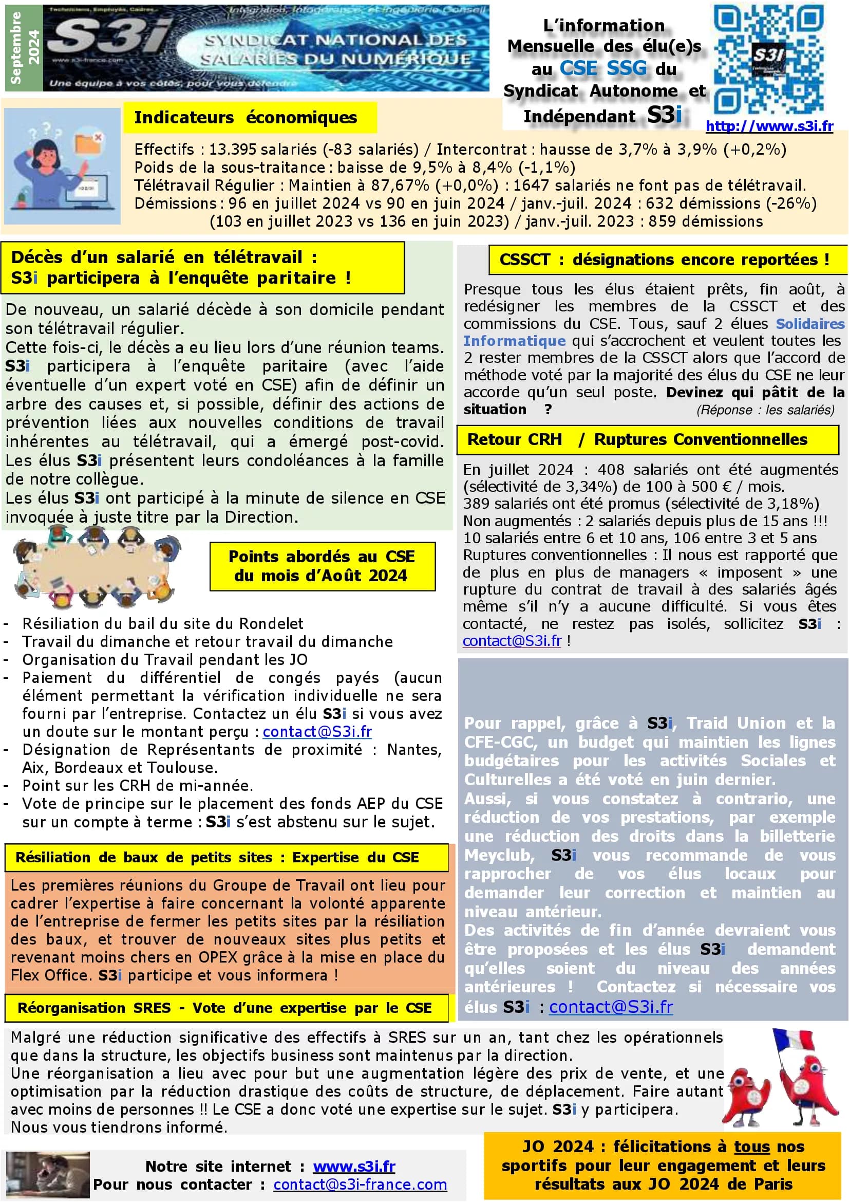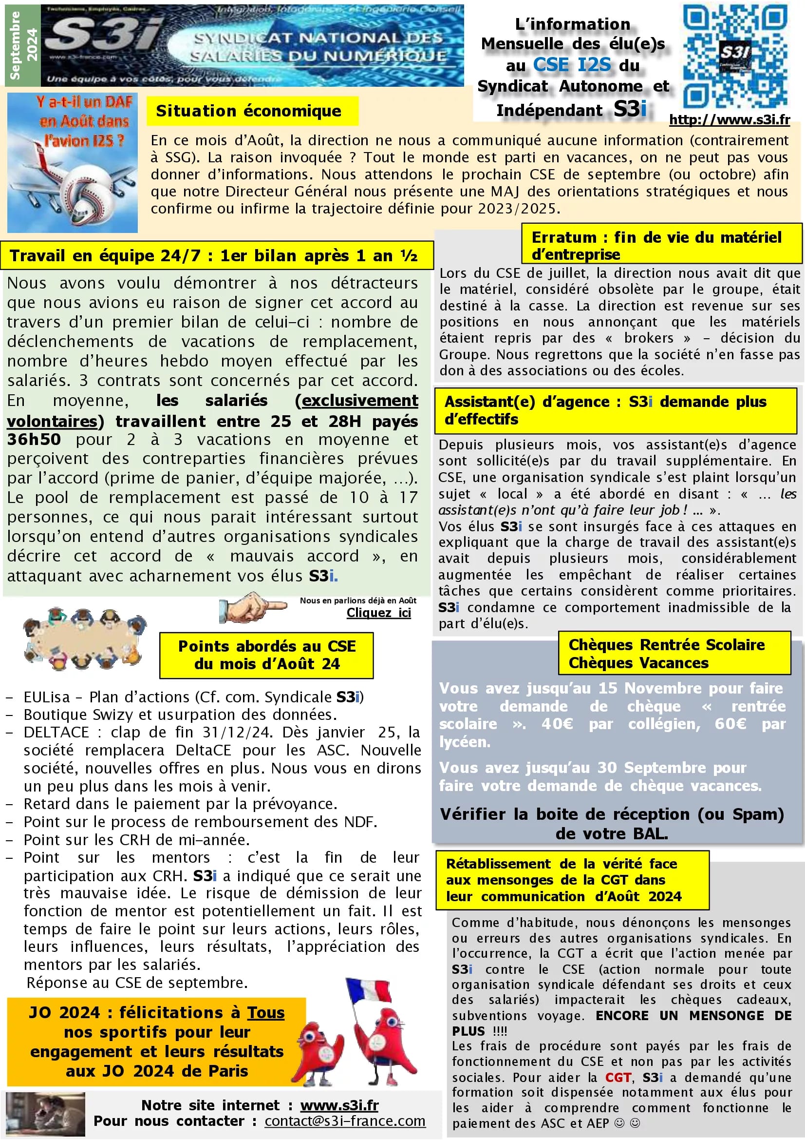 Information Syndicale et des élu(e)s au CSE Sopra Steria I2S et SSG – Septembre 2024