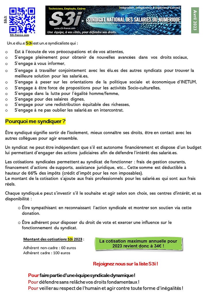 S3i et ses élus sont là pour aider celles et ceux au sein d’INETUM qui souhaitent s’organiser pour obtenir de réelles avancées.